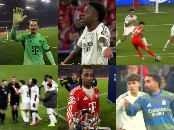 ריאל מדריד ובאיירן מינכן סיפקו לנו אמש (רביעי) את המשחק המשוגע של העונה בליגת האלופות. בסופו של דבר, לאחר מאבק סוער, החלטה שנויה במחלוקת של השופט ומבול שערים - הבווארים עלו לחצי גמר ליגת האלופות לאחר 3:4 גדול ו-4:6 בסיכום שני המשחקים.אנחנו כאן על מנת לרכז עבורכם את הרגעים והזווית שאולי פספסתם במהלך ההתמודדות. המיטב לפניכם >>> עוד לפני שריקת הפתיחה, האוהדים באליאנץ ארנה דאגו לתפאורה מרהיבה. Unreal tifo by Bayern Munich before their game with Real Madrid tonight. 👏 pic.twitter.com/DleqC2bHg2— 𝐂𝐚𝐬𝐮𝐚𝐥 𝐔𝐥𝐭𝐫𝐚 𝐎𝐟𝐟𝐢𝐜𝐢𝐚𝐥 (@thecasualultra) April 15, 2026 זה דווקא התחיל טוב מבחינת ריאל מדריד, שהשער השני שלה הגיע מבעיטה חופשית מושלמת של ארדה גולר, כך זה נראה מהיציע. @ArdaGuler pic.twitter.com/yd5vj9OKdg— ` (@YrcQo) April 15, 2026The slow motion of Arda Güler’s stunning free kick goal. This footage is unreal. 🤯✨ pic.twitter.com/goRyuAXYfa— Arda (@kingbeofguler) April 15, 2026يابشررررررررررررر علق نوير 🤯🔥اردا غولير غير طبيعي ، يسجل للمره الثانية بطريقة تاريخية 🤩🤍 https://t.co/2vu0bUqY9K pic.twitter.com/3zDG3Fj8fj— خالد بن فصلا | KF (@wlv_s1) April 15, 2026 עוד לפני הכרטיס האדום של קמאבינגה, העצבים חגגו אצל הלבנים. בין היתר, בלינגהאם ביקר את ויניסיוס, והברזילאי זעם: "מה אתה רוצה, מה אתה רוצה? תסתום את הפה שלך".האירוע במוקד היה כמובן הכרטיס הצהוב השני לאדוארדו קמאבינגה, שנדהם מההחלטה, וגם אמבפה התקשה להאמין La razón de la expulsión de Camavinga fue por tomar el balón en una falta a favor del Bayern…Opiniones? 🤐 pic.twitter.com/s0qPwZYaVg — MT2 (@madrid_total2) April 15, 2026 .התגובה על ספסל ריאל לאחר הרחקת קמאבינגה Everything Arda Güler did… gone for nothing.Thank you, Camavinga. pic.twitter.com/VW22HiG9fZ — Arda Güler (fan) (@iHQGuler) April 15, 2026 קפטן ריאל מדריד, דני קרבחאל, אומנם לא שותף במשחק אך זעם על השופט בסיום: "זה באשמתך!", הטיח בו.השער שלמעשה שלח את באיירן לחצי הגמר היה מרגלי לואיס דיאס, וכך זה נראה מהיציעים: هدف لويس دياز القاتل في مرمى مدريد 🤯👌🏻#ريال_مدريد_بايرن_ميونخ pic.twitter.com/jdPmUuqsUT— KHALID ALOLYAN 🇸🇦🐪 (@OLYAN15K) April 15, 2026 Luis Diaz winning goal in Bayern Munich vs Real Madrid UCL Quarterfinal 2nd Leg game.(@wlv_s1) pic.twitter.com/l1TiLiBH1D — Daily Foot Vibes (@dailyfootvibes) April 15, 2026כך נראה מהיציע השער הרביעי של באיירן מרגלי אוליסה. Look at This Shooting Technique from Michael Olise scoring in the Last Minute.This is What it means!!!😮‍💨 pic.twitter.com/PUglkpANMX — 𝘽𝙚𝙣𝙟𝙞𝙁𝘾𝘽 ¹⁷ (@Official_Benji_) April 15, 2026אוליסה גם נבחר בסיום לאיש המשחק.@fcbayern The coldest POTM handover 🥶 Michael #Olise after our win vs Real Madrid 😎#FCBayern #UCL ♬ Originalton - FC Bayern מנואל נוייר אומנם לא הציג את משחק חייו בין הקורות, אך חגג את הניצחון גם עם הצלמים:@fcbayern Goated high five ✋🐐 Manuel #Neuer after our win vs Real Madrid 😄🫸🫷 #FCBayern #UCL ♬ Originalton - FC Bayern "בדיחה", "חוסר צדק", "ראיתם מה שראיתי, נכון?", בסיום, שחקני ריאל מדריד לא הסתירו את תסכולם מהשיפוט גם מול התקשורת. The Real Madrid players are 𝙉𝙊𝙏 𝙃𝘼𝙋𝙋𝙔 😡🎥 @lejournaldureal pic.twitter.com/gxy7KFSk9L — 433 (@433) April 15, 2026.שחקני ריאל הסתערו על השופט עם השריקה לסיום The Real Madrid players immediately went to the referee after the final whistle 😤Arda Güler was shown a red card 😬🟥🎥 @JaimeHerrero19 pic.twitter.com/yyM9FwjzT7 — 433 (@433) April 15, 2026 בסיום, ויניסיוס התנצל בפני אוהדי קבוצתו שהגיעו למינכן. بعد ما خرب الموسم فينسيوس يطلب المغفرة من الجمهور . pic.twitter.com/PIQelvXUjl— ؏ــﻼء (@Alaadin32) April 15, 2026 למרות הזעם על השיפוט, שחקני הקבוצות דווקא שמרו על כבוד הדדי בסיום:Nothing but respect 🤝 pic.twitter.com/e7Pmf0AhF2— 🇺🇸 FC Bayern US 🇨🇦 (@FCBayernUS) April 15, 2026 האזינו לפודקאסט "הנוסע המתמיד" לסיכום רבעי הגמר >>>