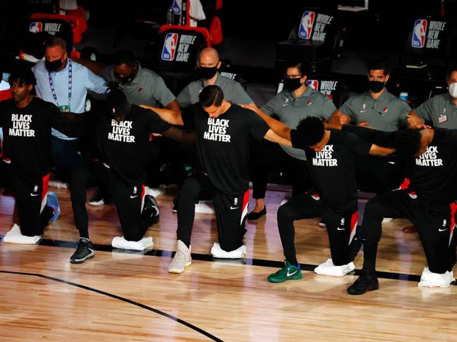 זה היה, כך נראה, רק עניין של זמן. לפני כל משחק ומשחק מאז חידוש העונה של ה-NBA ב"בועה" באורלנדו, רוב מכריע של השחקנים כורעים ברך בזמן נגינת המנון ארצות הברית. זאת כמחאה על האלימות המשטרתית, ותמיכה בתנועת "Black Lives Matters" ("חיי שחורים חשובים", בתרגום חופשי). כעת, כמעט-כצפוי כאמור, הגיעה התגובה של נשיא ארה"ב דונלד טראמפ. "כשאני רואה אנשים כורעים ברך במהלך נגינת ההמנון ולא מכבדים את הדגל שלנו ואת ההמנון הלאומי, מה שאני עושה באופן אישי זה לכבות את הטלוויזיה. אני חושב שזה מביש", יצא טראמפ נגד השחקנים והמאמנים, והעביר מסר תקיף גם למנהלי ליגת הכדורסל הטובה בעולם ובראשם הקומישינר אדם סילבר. "אנחנו עובדים עם ה-NBA, עבדנו איתם קשה מאוד בניסיון לחדש את העונה. אני דחפתי לכך שיחדשו את העונה. ופתאום אני רואה את כולם כורעים ברך. זה בלתי מתקבל על הדעת מבחינתי. כשאני רואה אותם כורעים, אני פשוט מכבה את הטלוויזיה. אין לי שום עניין במשחק בצורה הזאת. ואני בטוח שרבים אחרים חושבים כמוני". טראמפ, כמו טראמפ, לא שכח גם לשלוח עקיצה-קטנה רגע לפני סיום: "אחוזי הרייטינג של ה-NBA נמצאים בירידה, כמו שאתם יודעים. אני שומע שגם ענפים אחרים נמצאים בירידה, כולל הבייסבול. אנחנו חייבים לתמוך בדגל שלנו, במדינה שלנו. הרבה אנשים מסכימים איתי. אם אני טועה, אז אני אפסיד בבחירות. זה בסדר מבחינתי. אני תמיד אתמוך בדגל שלנו". כעת, ובכן, נשאר רק לחכות לתגובה של לברון ג'יימס... Trump Calls NBA Players 'Disgraceful' for Kneeling During Anthem https://t.co/g3I2TK5YNo pic.twitter.com/dNNU7HmPI5— Complex Developer (@cmplxdev) August 5, 2020