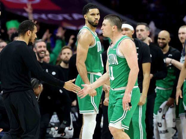 אחרי הניצחונות המוקדמים של סן אנטוניו בפורטלנד ושל טורונטו על קליבלנד, שקבעו 1:3 ו-2:2 בהתאמה, שני משחקים נוספים נערכו הלילה (בין ראשון לשני) בפלייאוף ה-NBA. בוסטון פירקה 96:128 את פילדלפיה בחוץ בדרך ל-1:3 מבטיח, ולאחר מכן יוסטון נטולת קווין דוראנט נמנעה מסוויפ כשהביסה 96:115 את לוס אנג`לס לייקרס ונטרלה את לברון ג`יימס. יוסטון - לייקרס 96:115 (3:1) אחרי שלוש הצגות שהובילו את LA ליתרון מדהים בסדרה, לברון ג`יימס נוטרל על 10 נקודות (2 מ-9 מהשדה) לצד 9 אסיסטים ו-8 איבודים, והרוקטס כפו משחק 5 בעיר המלאכים. ללא קווין דוראנט הפצוע, אמן תומפסון הוליך את האדומים עם 20 נקודות ו-7 אסיסטים, טארי איסון רשם 20 נקודות, 8 ריבאונדים ו-5 חטיפות, אלפרן שנגון הוסיף 19, ריד שפרד 17 וג`בארי סמית` ג`וניור 16 עם 8 כדורים חוזרים. דיאנדרה אייטון היה הקלע המוביל של הלייקרס עם 19 נקודות ב-75% מהשדה ו-10 ריבאונדים, אבל הוא הורחק בחצי השני בהחלטה שנויה במחלוקת אחרי שפגע בראשו של שנגון - ובלעדיו החבורה של ג`יי ג`יי רדיק קרסה לחלוטין. יוסטון הוליכה ב-9 הפרש במחצית, לפני רבע שלישי של 18:34 שסגר עניין. אגב, החבורה של אימה אודוקה השוותה את שיא המועדון בפלייאוף עם 17 חטיפות. <p><strong><span style="color:#009933;">פילדלפיה - בוסטון 128:96 (3:1)</span></strong><br />פייטון פריצ`רד להט עם שיא קריירה בפלייאוף של 32 נקודות (6 מ-12 משלוש), ג`ייסון טייטום כיכב לצדו עם 30 נקודות (25 בחצי השני), 11 אסיסטים ו-7 ריבאונדים והסלטיקס לא התרגשו מחזרתו של ג`ואל אמביד אחרי כשלושה שבועות - ועשו צעד משמעותי אל עבר חצי גמר המזרח. <br /><br />אמביד (26 נקודות, 10 ריבאונדים, 6 אסיסטים) התאושש מהדלקת שלו בתוספתן, אך לא הצליח להשפיע על התוצאה במשחקו הראשון בפלייאוף מזה שנתיים. הסלטיקס הובילו 18:34 לאחר רבע אחד ודהרו לניצחון קליל, שמציב אותם מרחק 48 דקות מהשלב הבא, בו יפגשו אם יעפילו את ניו יורק/אטלנטה. <br /><br />ג`יילן בראון תרם 20 נקודות לצד 7 ריבאונדים לירוקים שניצחו 30:51 את קרב הכדורים החוזרים. טייריס מקסי קלע 22 נקודות למפסידה, שקיבלה 16 מפול ג`ורג` ו-6 בלבד מכוכב משחק 2, וי ג`יי אדג`קום. </p><p>פריצ`רד קלע שלשה על רגל אחת עם הבאזר של הרבע הראשון, שחתמה ריצת 5:22, וכבר בהפסקה הוא עמד על שש שלשות. טייטום קלע 30+ בפעם הראשונה בסדרה (והשנייה מאז החזרה מהפציעה באכילס) והוא קרוב למעמד בו נקטעה העונה הקודמת שלו ושל הסלטיקס. </p><p><strong>צפו>></strong></p>