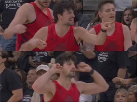 מיד אחרי המהומה, כוכב סן אנטוניו חסם את הישראלי, גיחך וחגג בצד השני